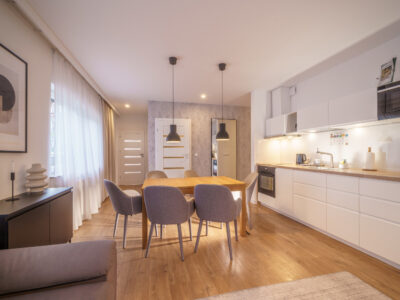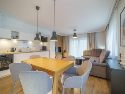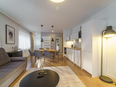 Na jego powierzchnię składają się dwie niezależne sypialnie, duży salon z kuchnią, łazienka. Apartament znajduje się w korzystnej lokalizacji przy ulicy Zakopiańskiej w Świeradowie Zdroju, położony jest w bezpośrednim sąsiedztwie singletrack -ów , runtrack-ów z bezpośrednim wejściem do lasu a zarazem tylko 300 metrów od dolnej stacji kolei gondolowej. Do lokalu przynależy naziemne miejsce postojowe do wyłącznego korzystania, komórka lokatorska o powierzchni 1,47 m2 a także taras. Apartament ma niezależne ogrzewanie gazowe. Lokal od samego początku użytkowania – od 2017 roku był i nadal jest wynajmowany krótkoterminowo jako apartament wakacyjny zarządzany przez profesjonalnego zarządcę, dający stabilne przychody. Lokal jest ciągle w ruchu, jest odpowiednio wypromowany, ma swoich stałych bywalców którzy cyklicznie do niego wracają. Nowy nabywca może kontynuować umowę z dotychczasowym zarządcą, na ustalonych warunkach, bez przestoju związanego ze zmianą właściciela.