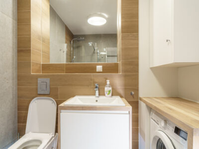 Na stanie: zmywarka, lodówka, meble, piekarnik, kuchenka, telewizor, pralka